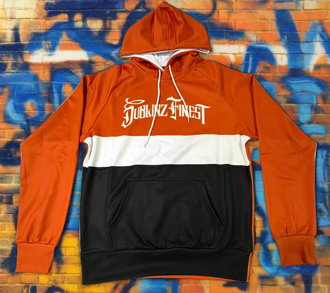 Super comfortable Dublinz Finest Hoodie in Black, White and Orange. Made exclusively for Cosmellow Clothing. 100% Polyester